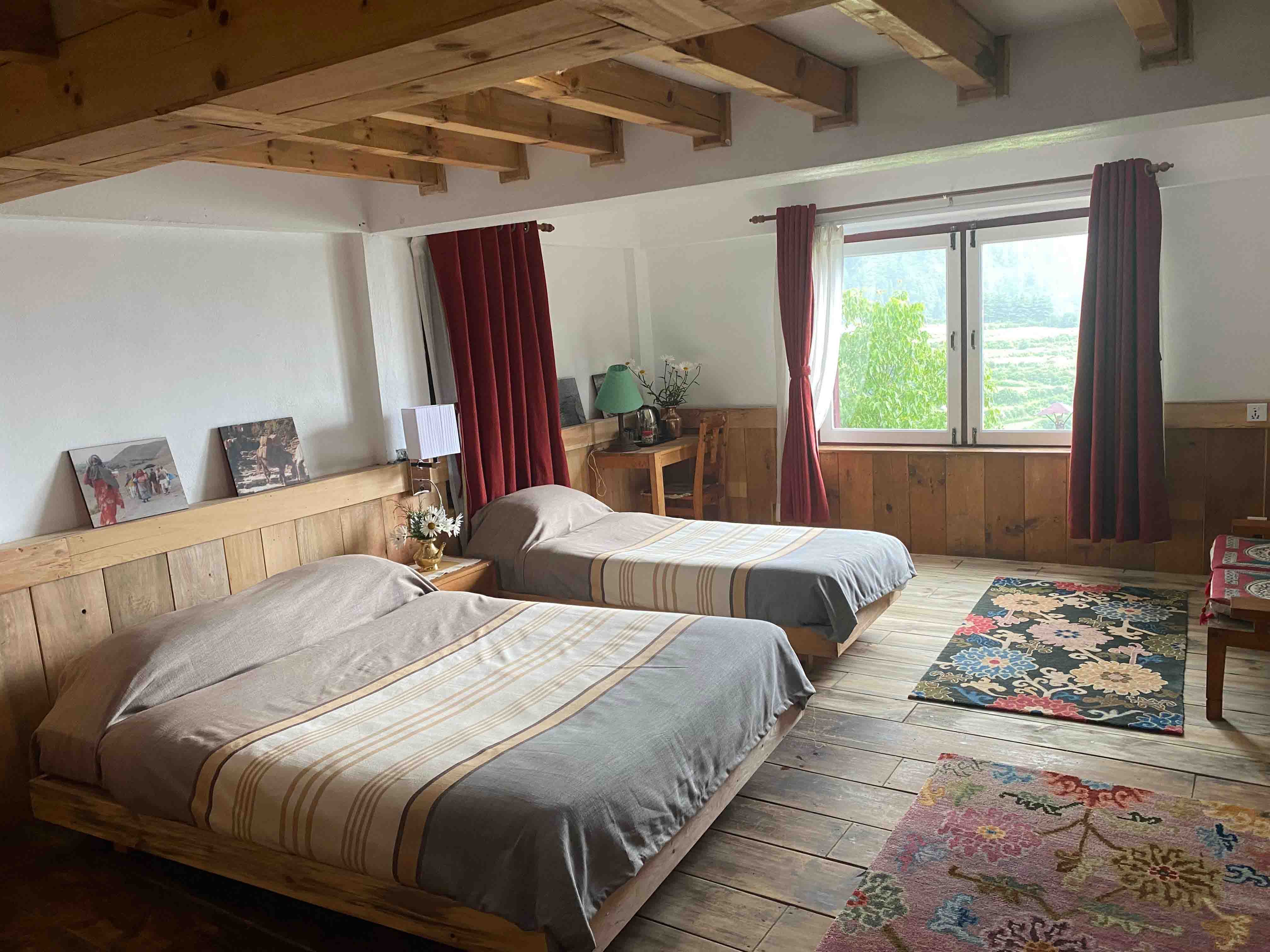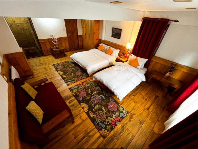 We have 18 double rooms with attached bathrooms. Many rooms have a direct mountain view, with one room having both Dhaulagiri and Nilgiri visible from its windows. All our rooms are kept warm with electric heaters to ensure maximum comfort for our guests.